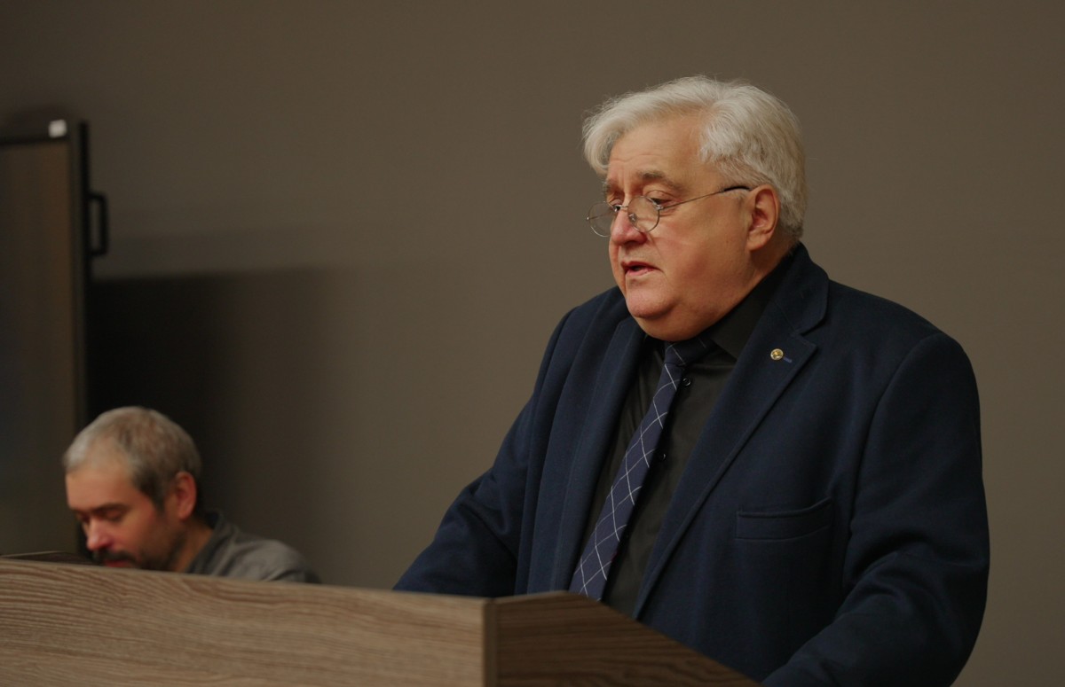 Со вступительным словом выступил заведующий кафедрой гражданского процесса профессор В.В.Молчанов. Валерий Владимирович обратился с инициативой увековечивания памяти А.Ф. Клейнмана путем оформления именной учебной аудитории для студентов Юридического факультета.
