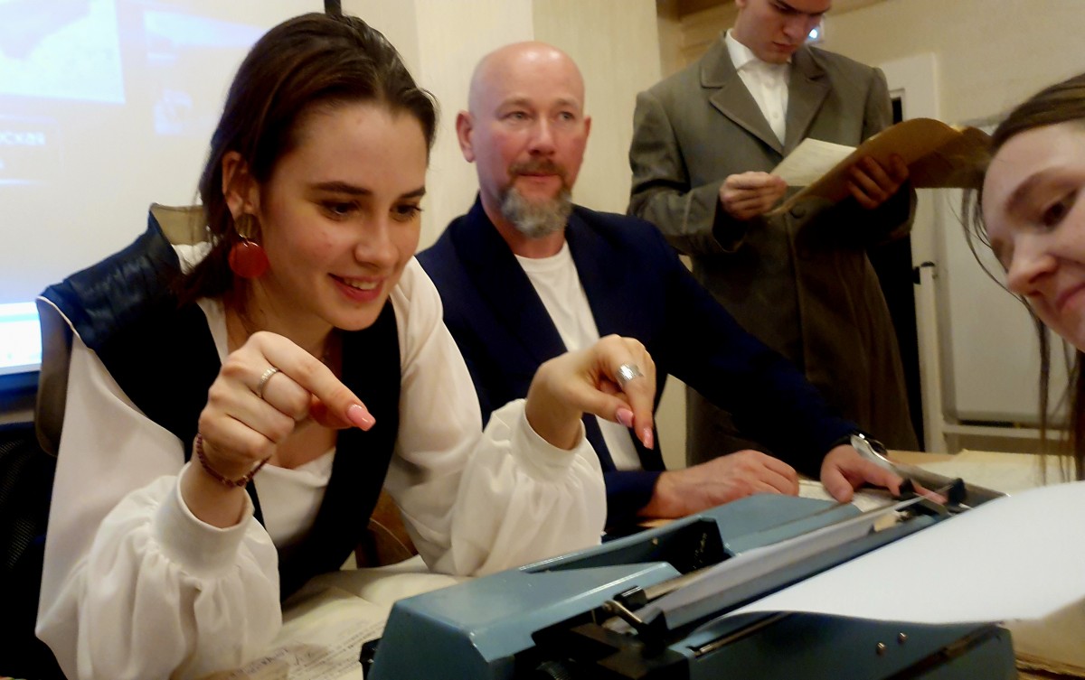 Также желающие могли примерить как повседневную, так и форменную одежду служащих государственных учреждений дореволюционного времени. Студенты с энтузиазмом откликнулись на предложение разыграть небольшую костюмированную сценку из жизни нотариусов.