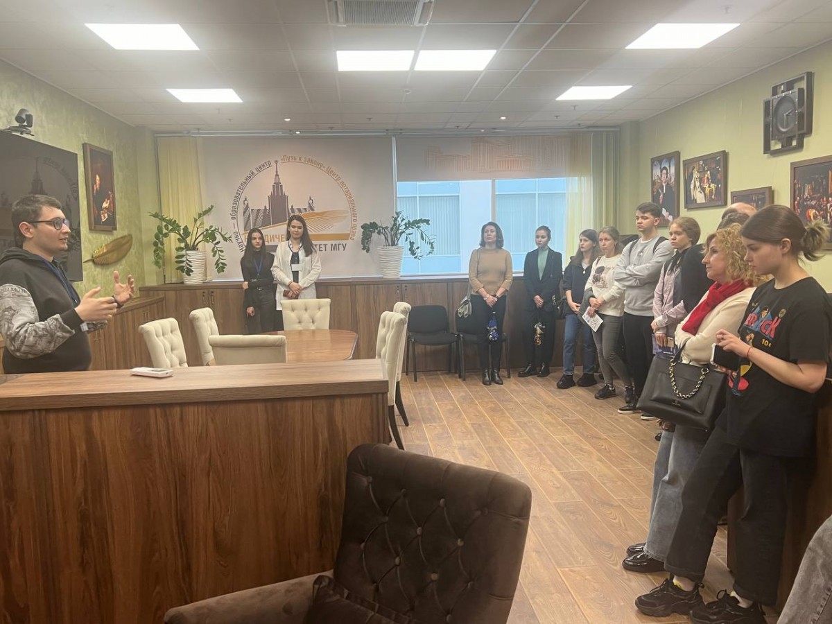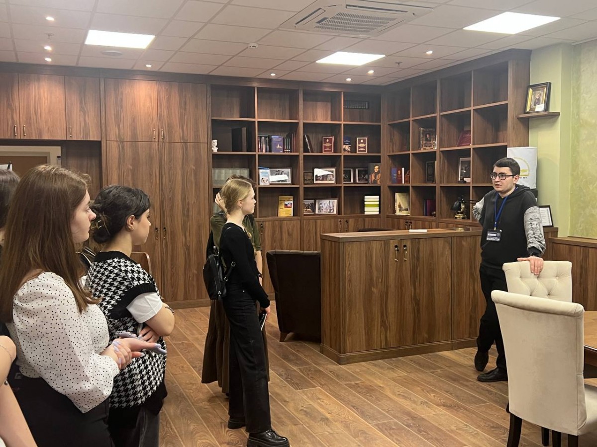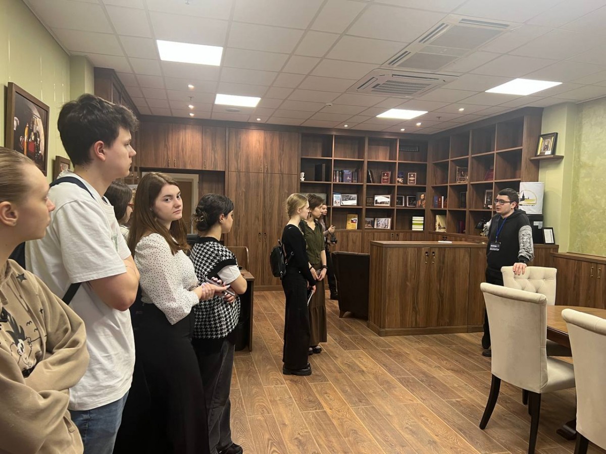 Абитуриентам также была проведена экскурсия по Юридическому факультету. В том числе гости посетили НОЦ «Центр нотариального права «Путь к закону». Руководитель студенческого актива Центра, студент 4 курса Юридического факультета Амирхан Кумуков рассказал об истории нашего Центра, основных направлениях работы, научной, исследовательской и общественной жизни. Абитуриенты с интересом ознакомились с экспозицией, посвящённой памяти М.К.Треушникова, репродукциями картин выдающихся зарубежных и отечественных художников, которые неоднократно в своих произведениях обращались к профессии нотариуса и его роли в светской жизни.
