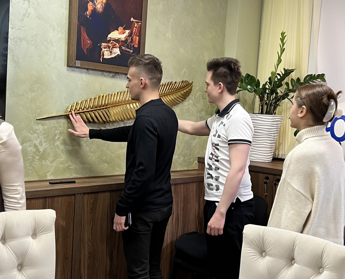 Все экскурсионные группы с интересом послушали презентацию о деятельности Центра и задали вопросы активистам. Также гости Центра ознакомились с экспозициями, посвящёнными жизни и деятельности Михаила Константиновича Треушникова инотариату в искусстве. В конце экскурсий абитуриенты прикоснулись к Волшебному перу и загадали желания.