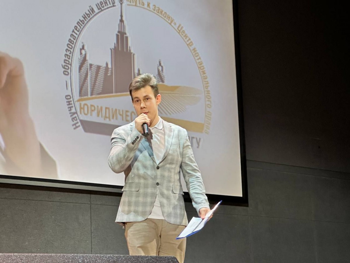 Приятным сюрпризом для всех стало выступление студента 2 курса Юридического факультета Дмитрия Михнова, который прочитал свое стихотворение, посвященное нотариату.