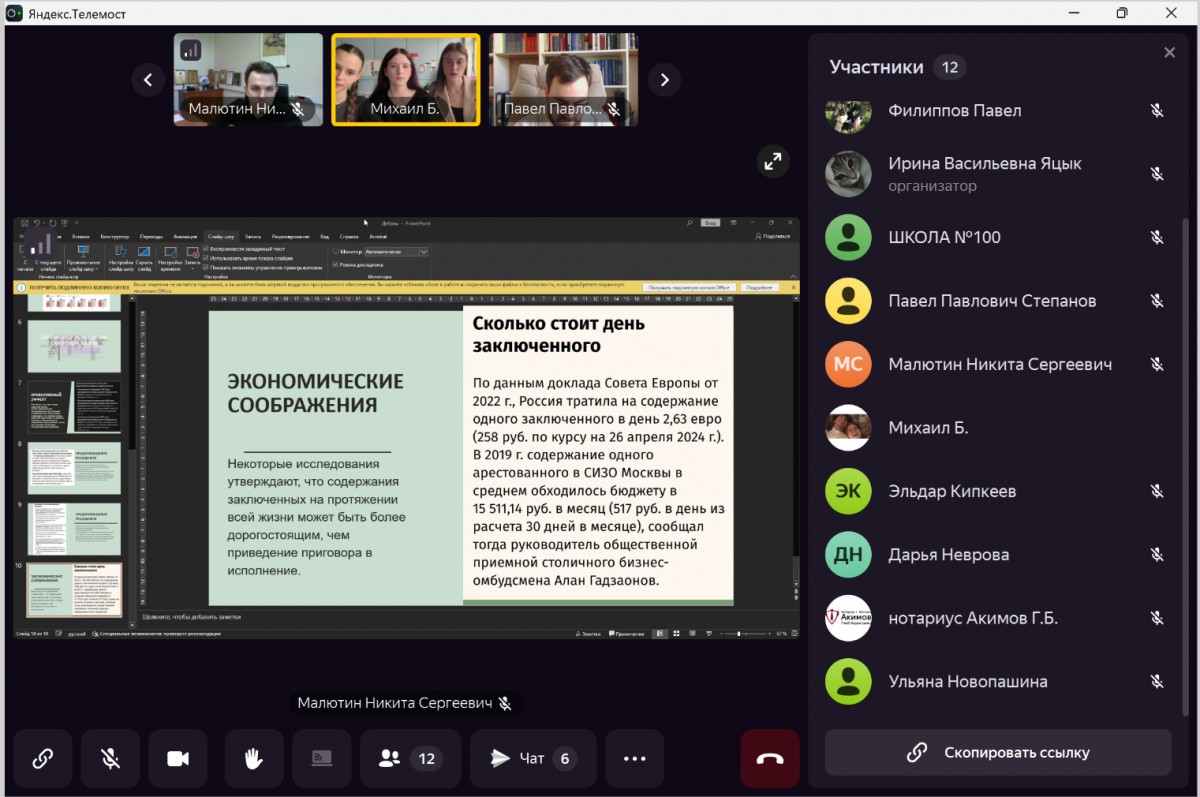 Все участники и гости, мероприятия, подключившиеся к телемосту, отметили атмосферу живого обсуждения, интеллектуального азарта и конструктивного диалога. Все команды продемонстрировали погружение в материал, анализ различных точек зрения, умение формировать аргументы, знание статистики. Тема смертной казни требует глубокого анализа и осмысленного подхода, тем не менее, школьникам удалось выделить наиболее важные аспекты этого вопроса и обосновать свои точки зрения.