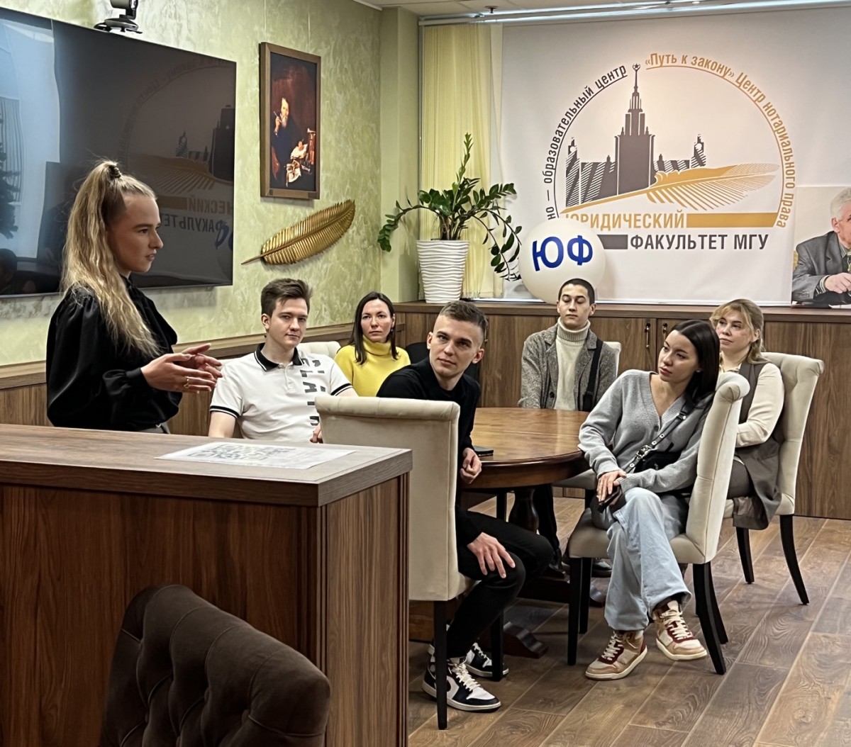 21 января 2024г. уже традиционно в рамках Дня открытых дверей МГУ на Юридическом факультете Московского государственного университета состоялись экскурсии по научно-образовательным центрам факультета для школьников и их родителей. НОЦ «Центр нотариального права “Путь к закону”» на Дне открытых дверей представлялстуденческий актив Центра: София Томникова, Кирилл Кондратьев, Дарья Неврова.