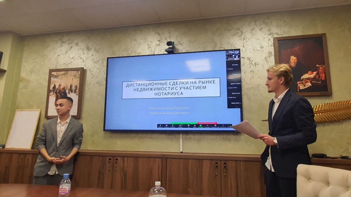 ● «Дистанционные сделки на рынке недвижимости с участием нотариуса» (Павлов Александр Андреевич и Теребков Данила Алексеевич, студенты Юридического факультета Московского государственного университета имени М.В. Ломоносова). Рассказано о преимуществах и недостатках нововведений в нотариате, а также о будущем развитии нотариата.