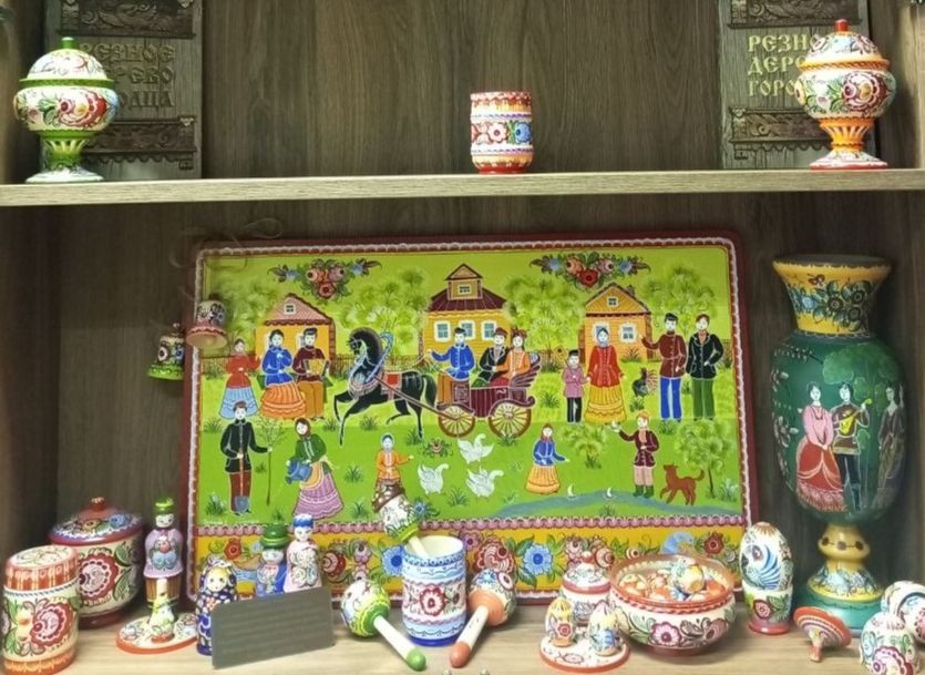 Веселая и праздничная городецкая посуда из коллекции М.К. Треушникова заняла свое место в экспозиции нашего Центра.