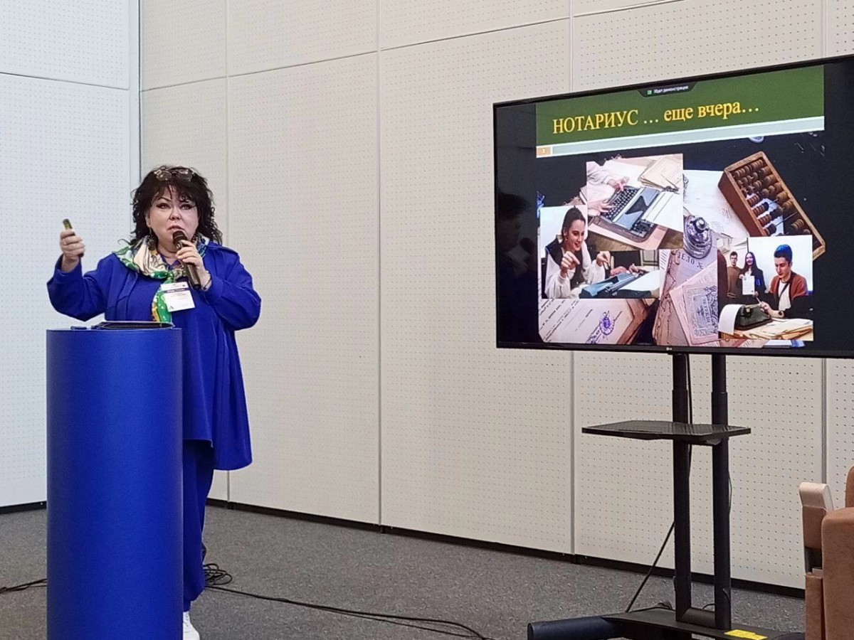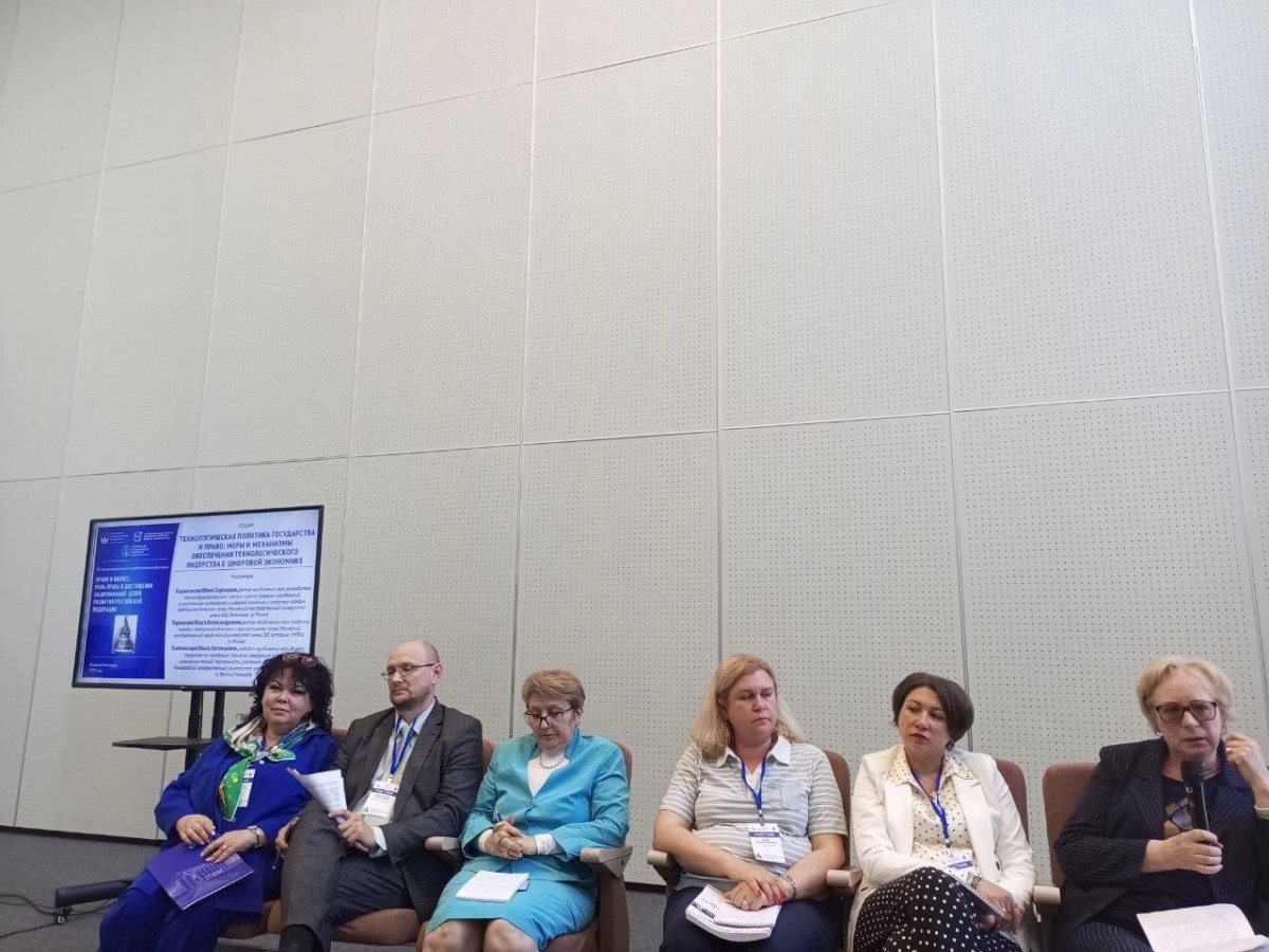 В рамках секции «Технологическая политика государства и право: меры и механизмы обеспечения технологического лидерства в цифровой экономике» (блок «Инфраструктура и инструменты реализации технологической политики») Ульяна Семеновна Новопашина представила доклад на тему «Правовое обеспечение применения цифровых технологий в деятельности нотариуса».